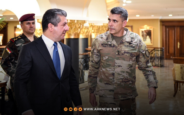 آرك نيوز... استقبل رئيس حكومة إقليم كوردستان مسرور بارزاني، الاثنين 3 نيسان / أبريل 2023، القائد العام لقوات التحالف الدولي في العراق وسوريا الجنرال ماثيو ماكفرلين.