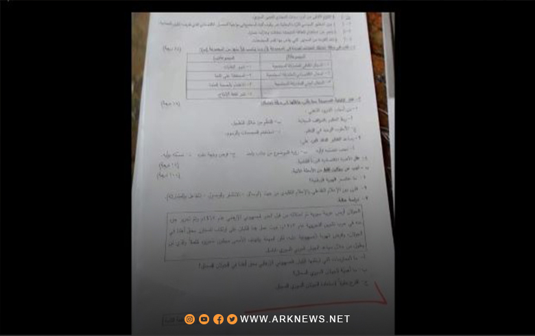 آرك نيوز.. أثار أحد الأسئلة الواردة في ورقة امتحان مادة (الاجتماعيات) لطلاب الشهادة الإعدادية/التاسع، موجة كبيرة من السخرية والانتقادات في منصات التواصل الاجتماعي، بعد أن طالب النظام السوري من خلال السؤال الطلاب بإيجاد حلول لـ (تحرير الجولان)، الذي منحه النظام السوري لـ إسرائيل منذ خمسين عاماً.