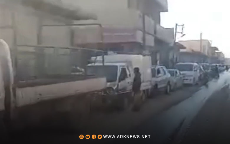 أظهر فيديو حصل عليه موقع "ARK"، وقوف عشرات السيارات في طوابير الانتظار لساعات طويلة أمام محطة "مصطفى درويش" للوقود في كوباني, للحصول على مخصصاتها من المازوت.
