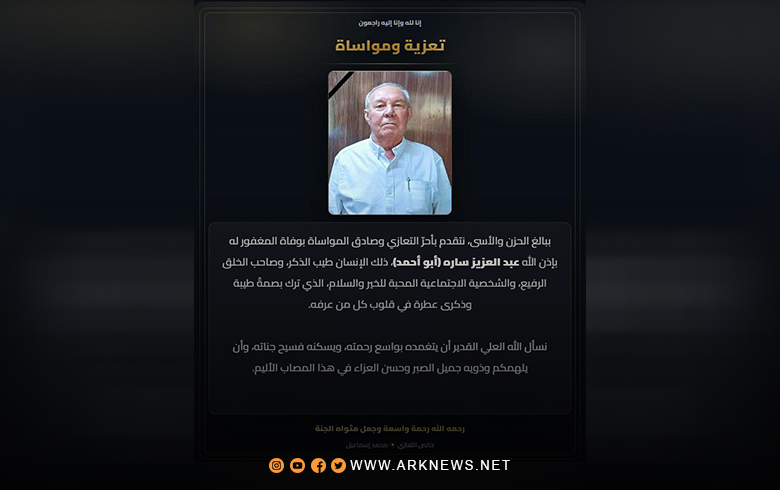 نشر محمد إسماعيل سكرتير الحزب الديمقراطي الكوردستاني-سوريا رسالة تعزية بمناسبة رحيل الشخصية الاجتماعية عبد العزيز ساره "أبو أحمد".